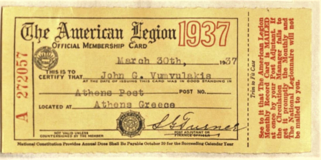 Η Αμερικανική Λεγεώνα ιδρύθηκε στις 15-17 Μαρτίου 1919 στο Παρίσι από απόμαχους της Αμερικανικής Εκστρατευτικής Δύναμης που συμμετείχε στον Α΄ Παγκόσμιο πόλεμο. Το Τμήμα Αθηνών ιδρύθηκε το 1927 από ομογενείς της Αμερικής, απόμαχους του Α’ Παγκοσμίου πολέμου. Πρώτο μέλημα του τμήματος το 1930 ήταν η δωρεά στην πόλη της Αθήνας ενός μνημείου στη μνήμη των Αμερικάνων Φιλελλήνων που πολέμησαν στον Αγώνα της Ανεξαρτησίας το 1821. Το μνημείο, έργο του γλύπτη Γ. Δημητριάδη, βρίσκεται σήμερα στο πάρκο της οδού Παναγή Κυριακού (πάρκο θείας Λένας, πλησίον της Αμερικανικής Πρεσβείας). Λαμβάνοντας υπόψη τις οικονομικές και κοινωνικές συνθήκες της αμερικανικής κοινωνίας τα χρόνια μετά τον Α’ Παγκόσμιο πόλεμο, ειδικά το 1928-1929, συμπεραίνουμε ότι οι περισσότεροι απόμαχοι επέστρεψαν στην πατρίδα αρκούμενοι στη μηνιαία πολεμική σύνταξη, που τους εξασφάλιζε η Αμερικανική Κυβέρνηση, λόγω της υπηρεσίας τους. Ορισμένοι από αυτούς, με διορατικό και επιχειρηματικό πνεύμα, ίδρυσαν το τμήμα, τόσο για την αποτελεσματικότερη διεκδίκηση των δικαιωμάτων τους, όσο και την προβολή των ιδανικών της τότε Αμερικανικής σκέψης, του φιλελευθερισμού και της δικαιοσύνης. Το καταστατικό του τμήματος αντανακλά τις παραπάνω αντιλήψεις και την προώθηση των δεσμών συναδελφοσύνης μεταξύ των μελών. Ο αριθμός των μελών του τμήματος αυξήθηκε κατακόρυφα με ποικίλες δραστηριότητες, ψυχαγωγικές, φιλανθρωπικές και κοινωνικές. Το 1939 έγινε η αγορά του κτιρίου στην οδό Τζιραίων 9, που αποτέλεσε και έδρα του τμήματος Αθηνών. Ακολούθησε η δημιουργία των τμημάτων της Τρίπολης, της Πάτρας, της Θεσσαλονίκης και των Χανίων. Σήμερα διατηρείται μόνο το τμήμα Αθηνών. Υπάγεται διοικητικά στην Περιφερειακή Διοίκηση Department of France, μεταξύ 30 ακόμη ευρωπαϊκών τμημάτων (Δ. Σιώτας. 2010).