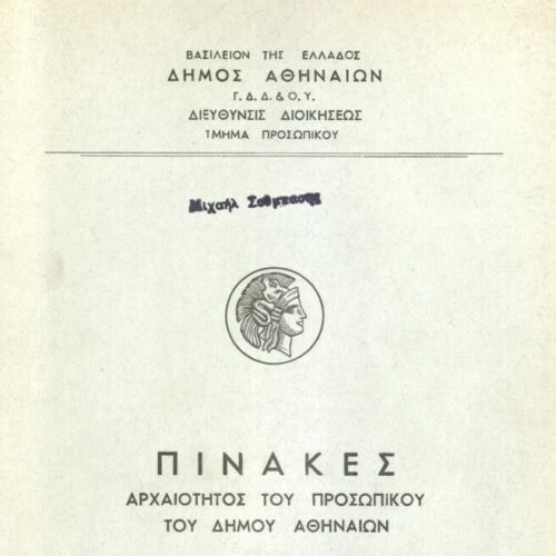 - Βιβλία μισθοδοτικών καταστάσεων έτη Ιούλ. 1950-Σεπτ. 1951, Οκτ. 1951-Ιούν. 1954, Ιούλ. 1954-1957Β, 1957Γ-1957Ε