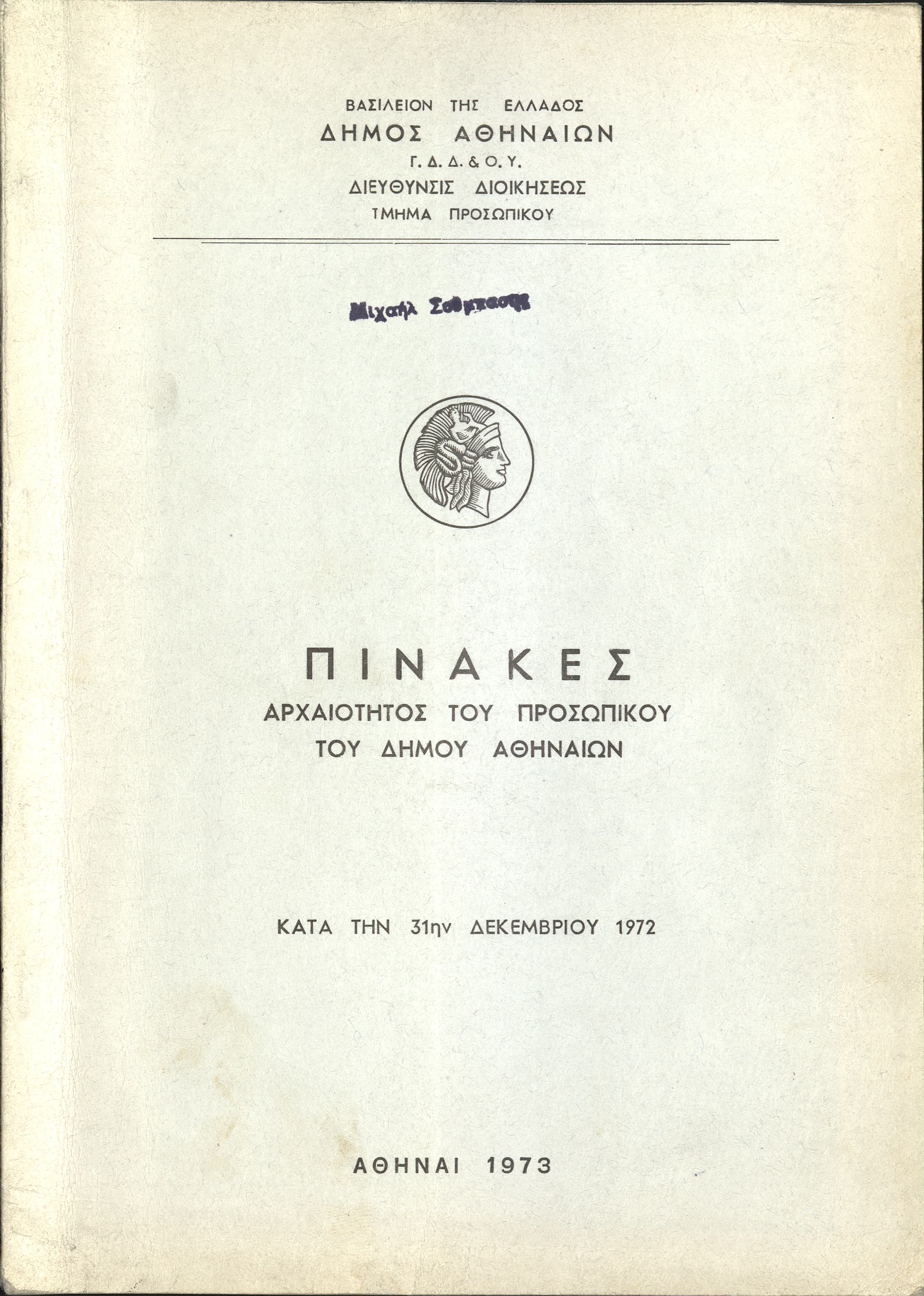 - Βιβλία μισθοδοσίας προσωπικού Νεκροταφείων έτη 1972-1973