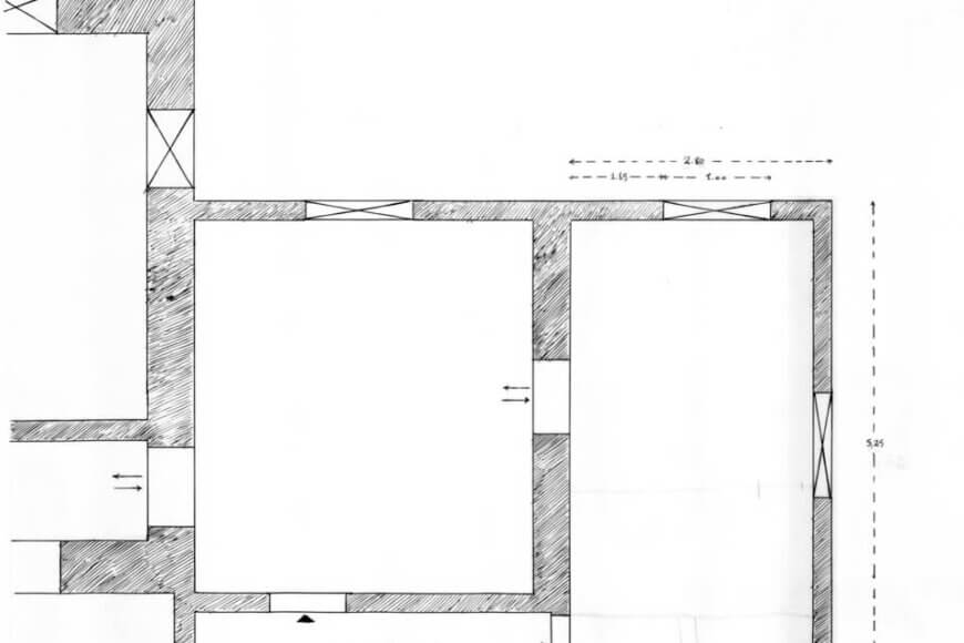 Αρ.σχ. 42. Παλαιό υδραγωγείο Αγίου Θωμά (Γουδί). Τμήμα υπόγειου θολωτού αγωγού (γαλαρία), μήκους 257 μ., από την πηγή (παλαιός Άγ. Θωμάς) μέχρι την διασταύρωση των οδών Σινώπης και Παπαδιαμαντοπούλου’, Αθήναι 1957. Κλ.1:300. Μελάνι σε διαφάνεια 44×111. Ενυπόγραφο: Ο συντάξας Ν. Ταμβάκης, Γεωπόνος – Επιμελητής Εθνικού Κήπου.