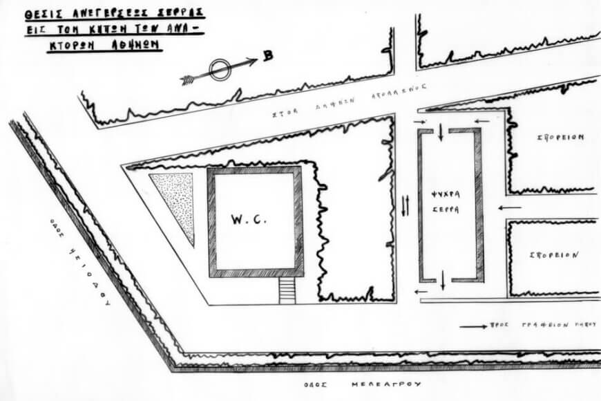 Αρ.σχ. 49. Εθνικός Κήπος, χ.χ. “Θέσις ανεγέρσεως σέρρας εις τον κήπον των ανακτόρων Αθηνών”. Μελάνι σε διαφάνεια 26×40 εκ.