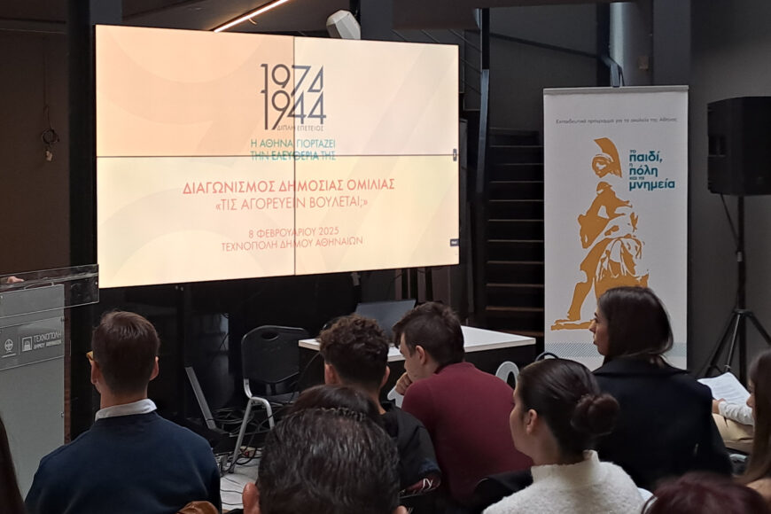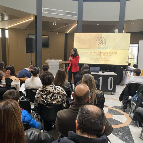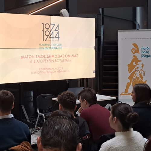 Μαθητές και μαθήτριες της Γ΄ Γυμνασίου και της Α΄ Λυκείου αφού παρακολούθησαν εργαστήρια ρητορικής κλήθηκαν να συνθέσουν, βάσει συγκεκριμένων οδηγιών, ομιλία (γραπτή ή προφορική καταγεγραμμένη σε ηχητικό αρχείο ή βίντεο) με θέμα «Η αποκατάσταση της Δημοκρατίας γέννησε για τις επόμενες γενιές την ευθύνη καλλιέργειας δημοκρατικού ήθους».