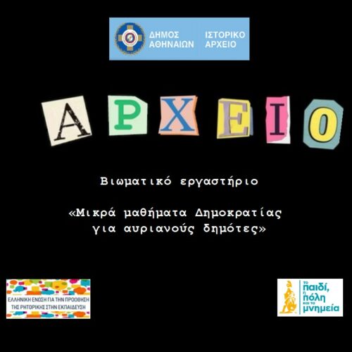Το Ιστορικό Αρχείο του Δήμου Αθηναίων πραγματοποιεί και φέτος το εκπαιδευτικό πρόγραμμα «Μικρά μαθήματα δημοκρατίας για αυριανούς δημότες», το οποίο απευθύνεται σε μαθητές Στ΄Δημοτικού και Γ΄Γυμνασίου.