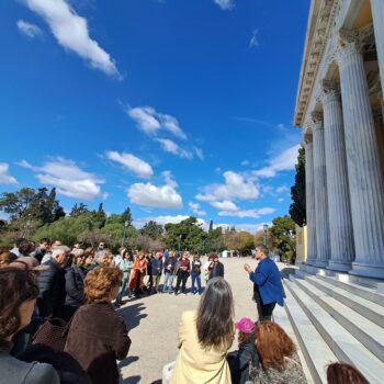 Κατά τη διάρκεια της περιήγησης, το κοινό είχε την ευκαιρία να εμβαθύνει στον αστικό και ιστορικό μετασχηματισμό της ευρύτερης περιοχής του Ιλισσού. Με βασικούς σταθμούς το Ζάππειο Μέγαρο και το Παναθηναϊκό Στάδιο, η ξενάγηση ανέδειξε τη μετάβαση από τις εθνικές εμποροβιομηχανικές εορτές των Ζάππειων Ολυμπιάδων στο διεθνές ολυμπιακό κίνημα. Παράλληλα, αναλύθηκε εκτενώς η μνημειώδης αναμαρμάρωση του Παναθηναϊκού Σταδίου –ως ένα από τα πρώτα εθνικής εμβέλειας δημόσια έργα– ενόψει των Αγώνων του 1896 και της ελληνικής Μεσολυμπιάδας του 1906, καθώς και η ευρύτερη πολεοδομική εξέλιξη των παριλίσσιων πεδίων (Λόφος Αρδηττού, Προπύλαια του Σταδίου).